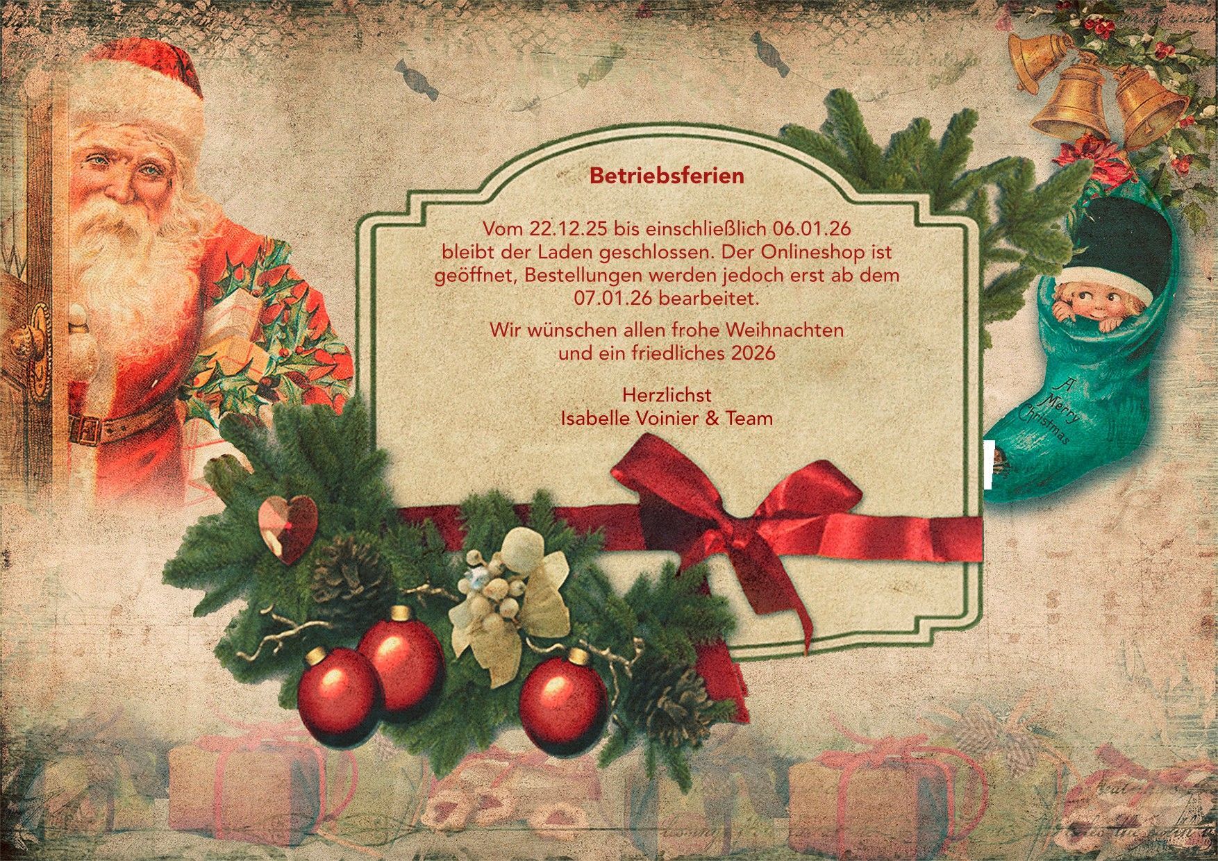 Montag 22.12.25 bis einschließlich Dienstag 06.01.26 wegen jährliche Betriebsferien.